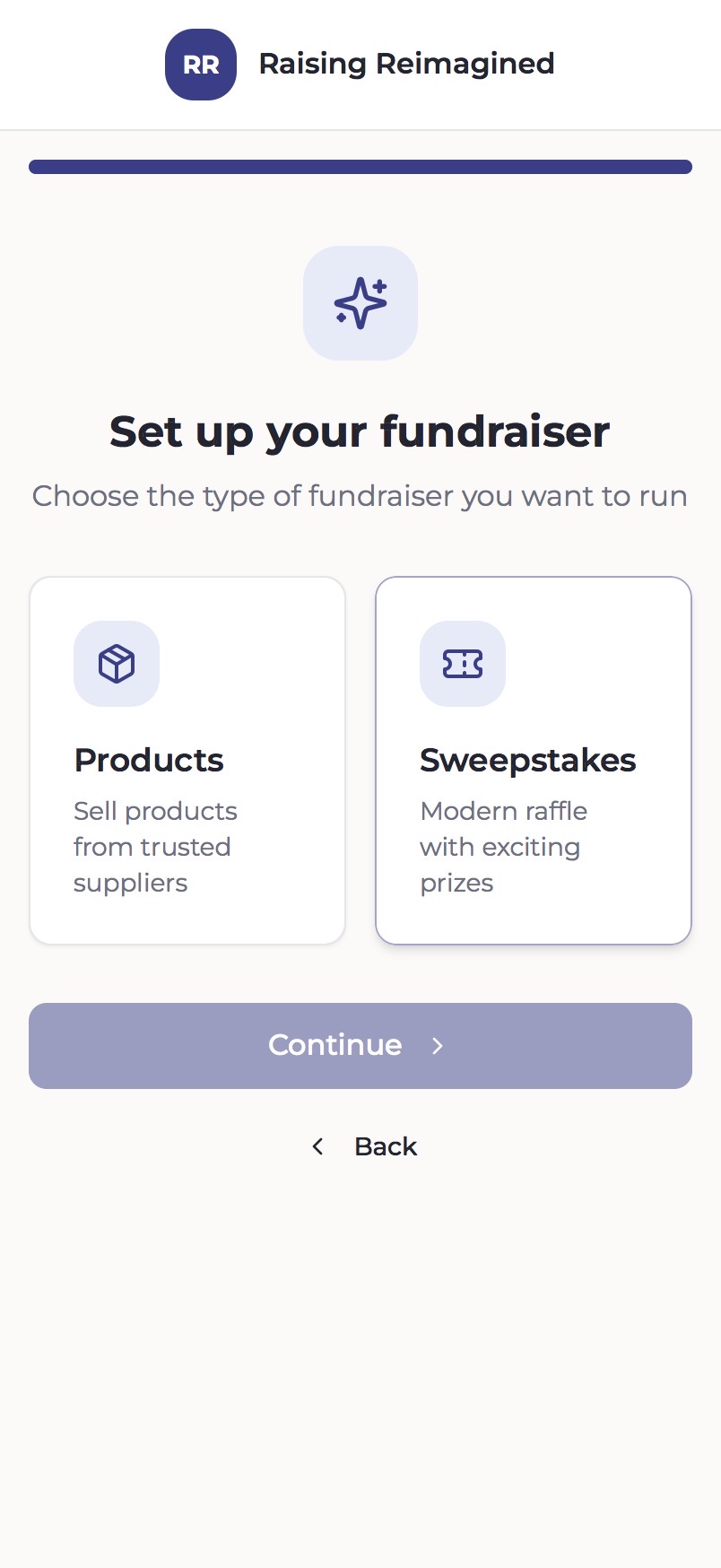 - ✓Choose your fundraiser type (product sale or sweepstakes)